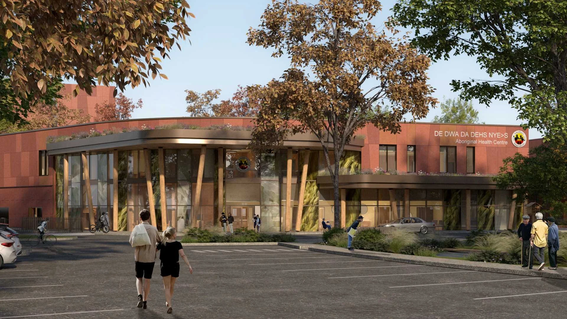 The Biindigen Well-Being Centre is a holistic, Indigenous-led, mixed-use project in th McQuesten neighbourhood located at 785 Britannia Ave. in Hamilton, ON (with an Indigenous population of 6%, almost double that of other areas in the city). The project will reimagine an existing school property to create the first of its kind in Ontario (and possibly Canada) and brings together Indigenous affordable housing, healthcare, daycare, and community services in one place. Designed with and for the urban Indigenous community, project partners are De dwa da dehs nye>s Aboriginal Health Centre), Niwasa Kendaaswin Teg, and Ontario Aboriginal Housing Services. Partners also include the City of Hamilton and McMaster University, with additional financial support from the Government of Canada, and the Province of Ontario.