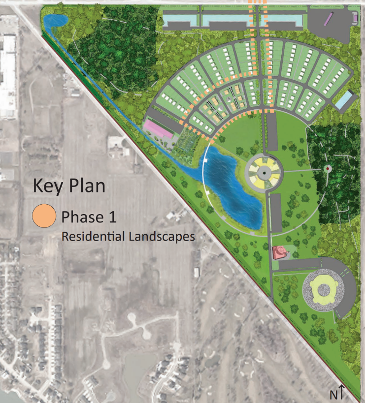 SpruceLab was responsible for two sets of community engagement sessions in both Leamington and London, to accommodate community members. The firm was also responsible for updating the neighbourhood master plan for the entire 80 ha (200 acres), which includes future pow wow grounds, cultural buildings, retirement home, recreation areas, and restoration with trails connecting to the existing woodlands on site. Traditional Ecological Knowledge was foundational to the landscape design, with culturally important plantings and spaces created to support community needs, including opportunities for intergenerational teachings. Sustainable landscape designs include permeable paving (concrete unit paving, and resin-bound aggregate), extensive native tree and other plantings (to enhance biodiversity), and ecological restoration for an adjacent woodland and stormwater detention pond (also designed with a sacred fire gathering space). This project is incredibly significant, as the Nation fought for almost 230 years to claim approximately 700 acres of their Traditional Territories back from the federal government and settler communities for their Nation.