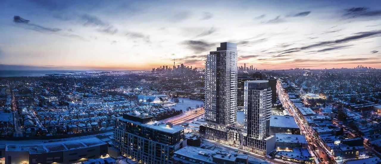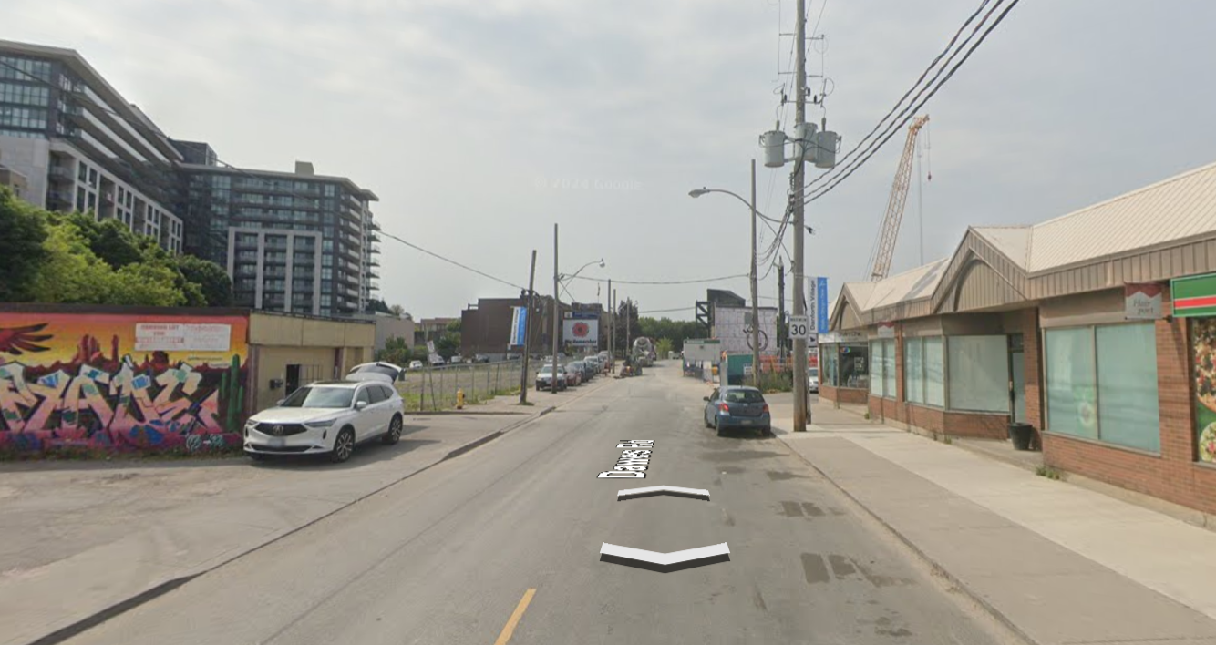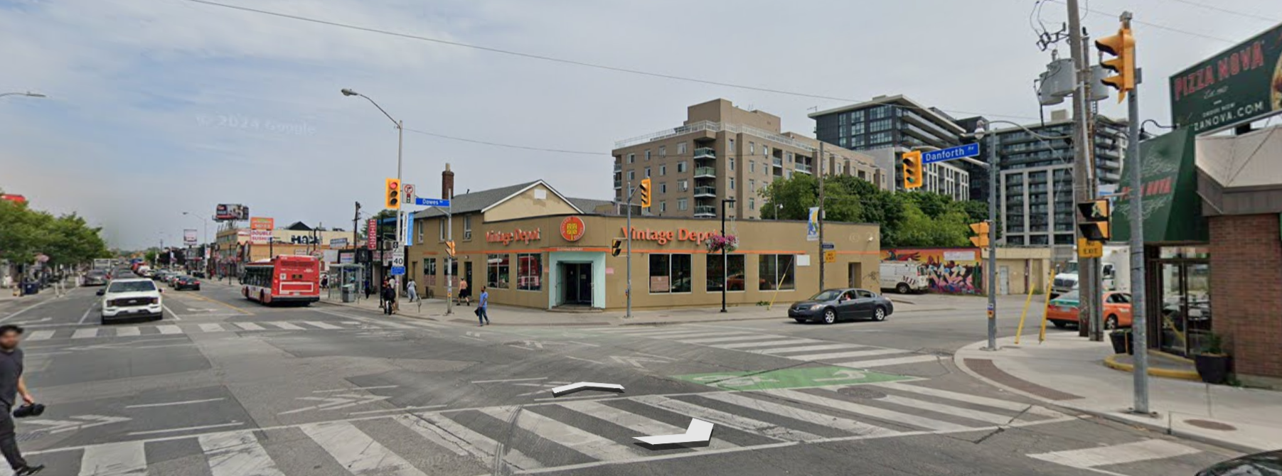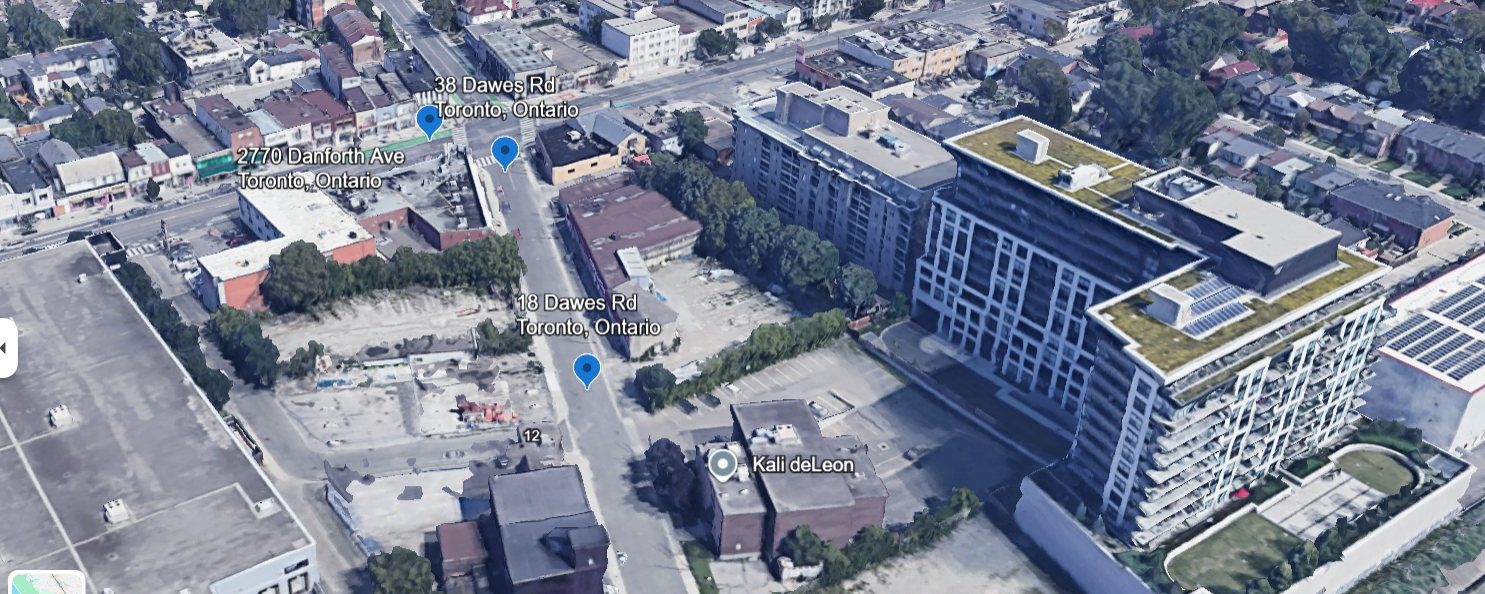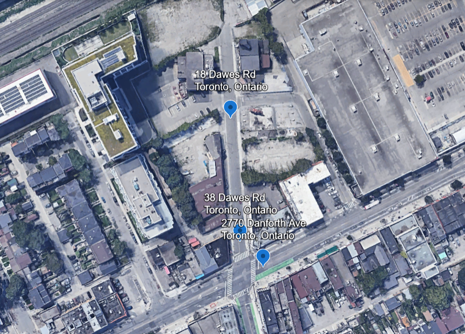 Existing street view Dawes Rd and Danforth Ave looking South East